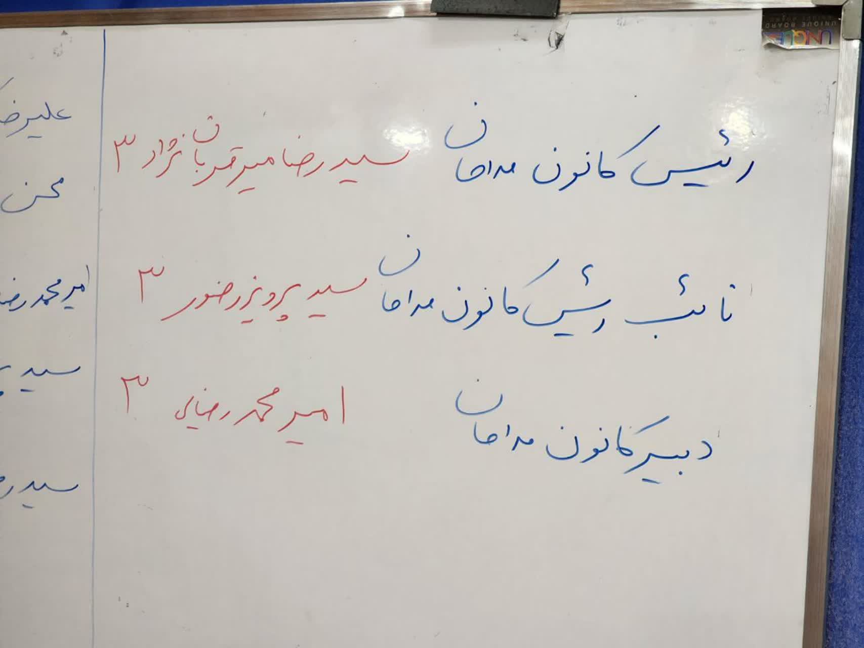 گفتنی است، در انتهای این جلسه انتخاباتی که عصر امروز با حضور مدیر کل تبلیغات اسلامی و رضا مهرعلی زاده کارشناس مسئول تشکلهای دینی مازندران و اعضای کانون مداحان استان در سالن شهدای این اداره کل برگزار شد سیدرضا میرقربان نژاد، سید پرویز رضوی و امیر محمد رضایی به تربیت به عنوان رییس ، نایب رییس و دبیر کانون مداحان استان انتخاب شدند .
