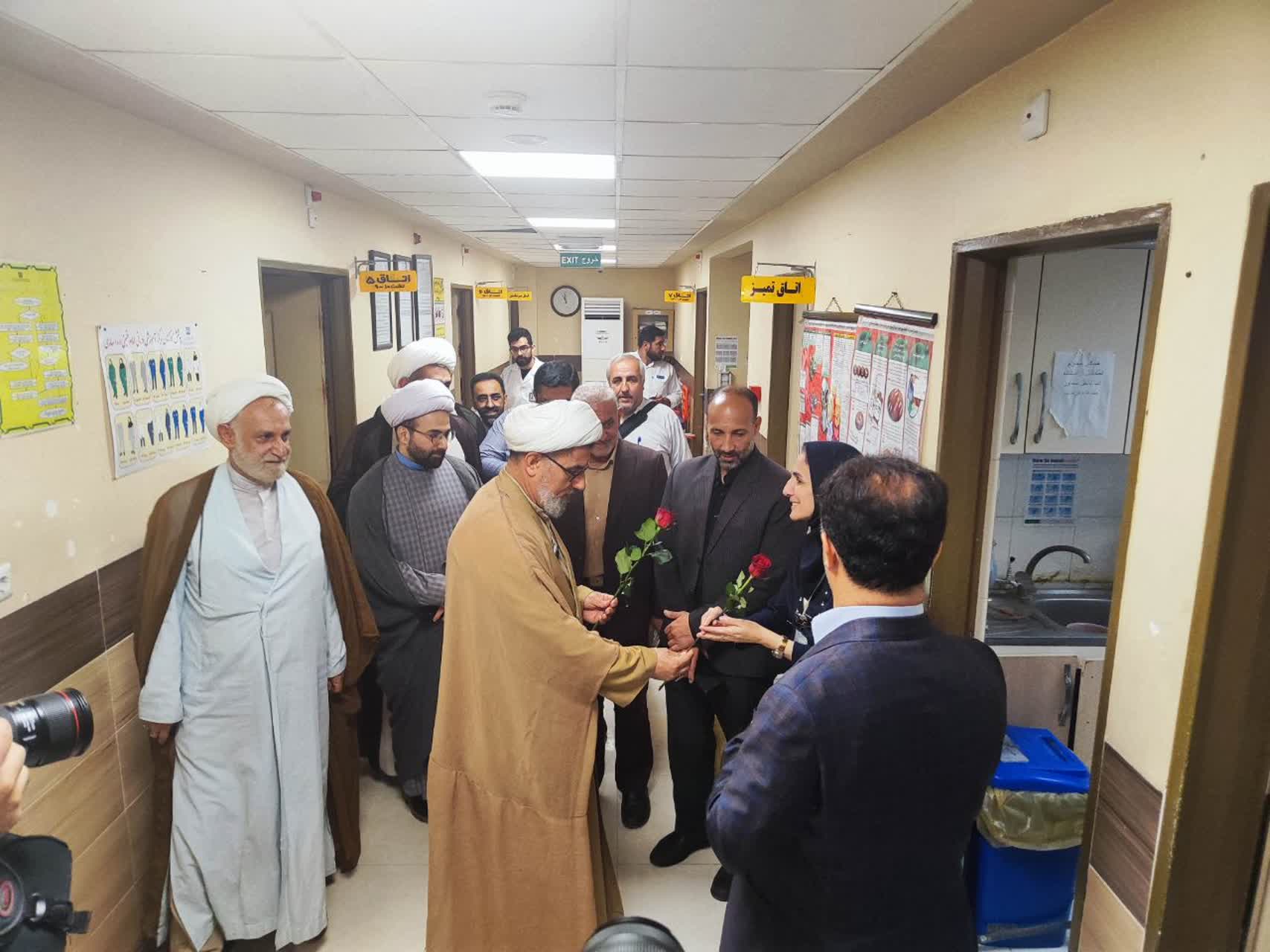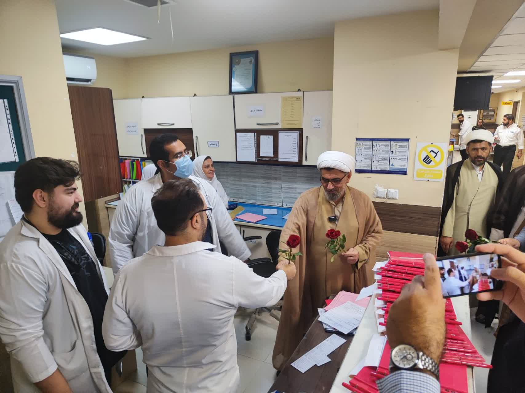 حجتالاسلام حیدری جناسمی مدیرکل اوقاف و امور خیریه استان مازندران با همراهی محمد سخائی رئیس بیمارستان امام خمینی(ره) ساری از بخشهای مختلف این بیمارستان بازدید و با اهدای گل از زحمات پرستاران قدردانی کردند.